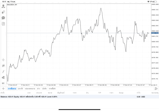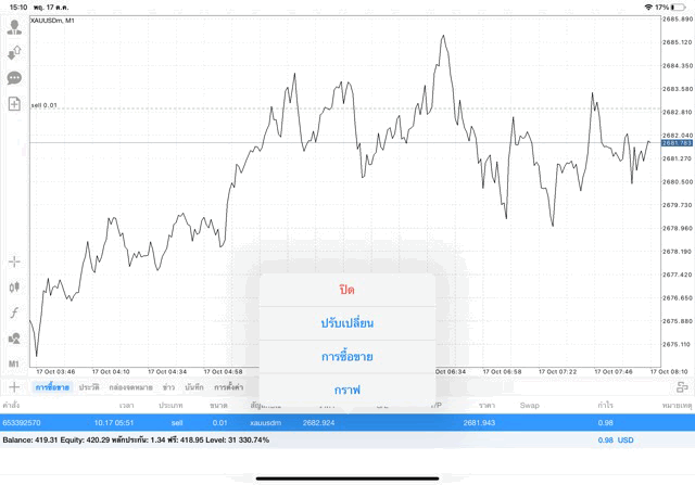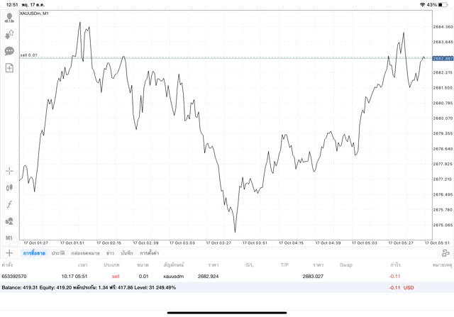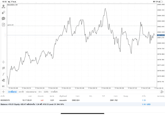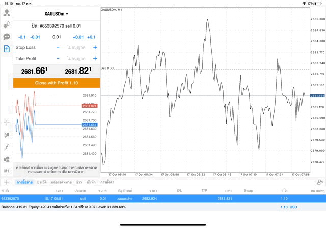 การเทรด XAUUSDm (ทองคำ) 0.01 lot แอพ Mt4