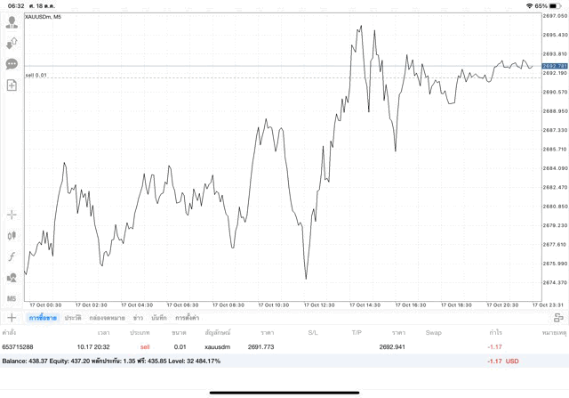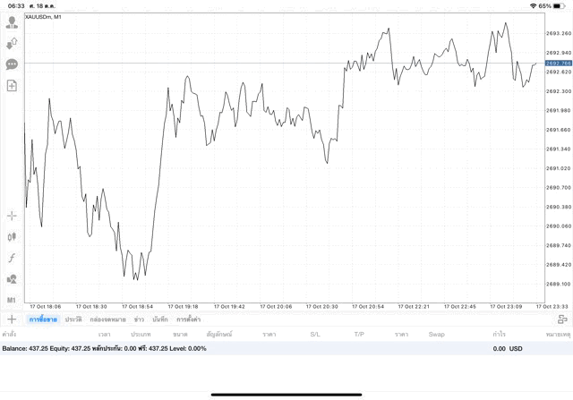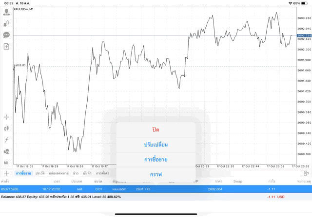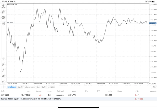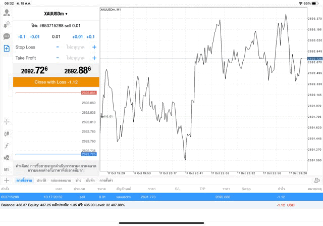 การเทรด XAUUSDm (ทองคำ) 0.01 lot แอพ Mt4