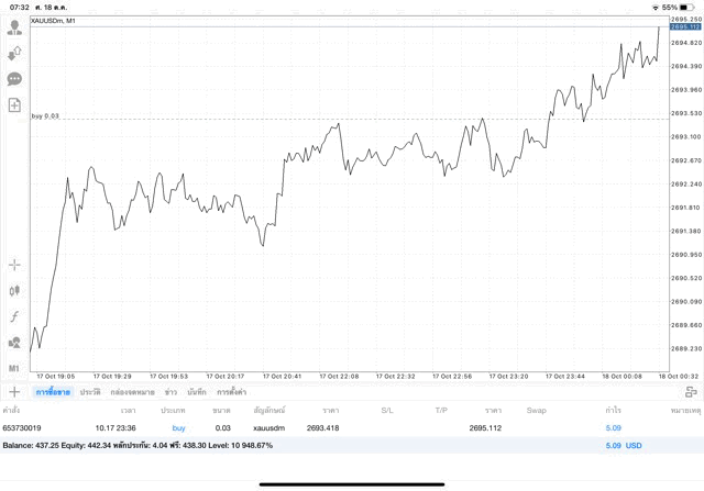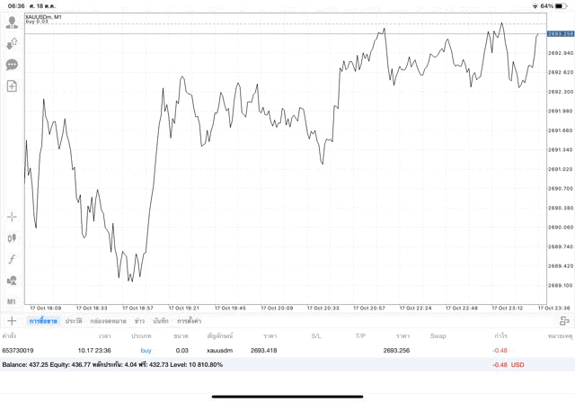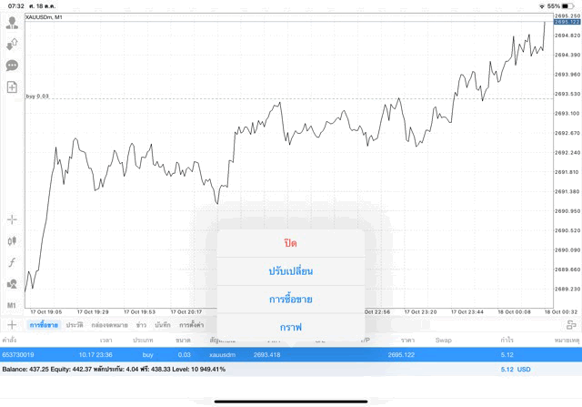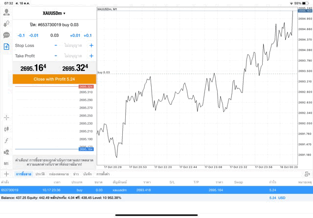 การเทรด XAUUSDm (ทองคำ) 0.03 lot แอพ Mt4
