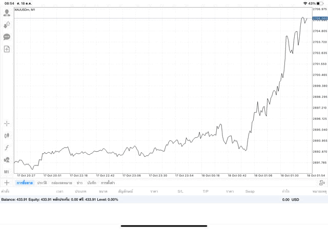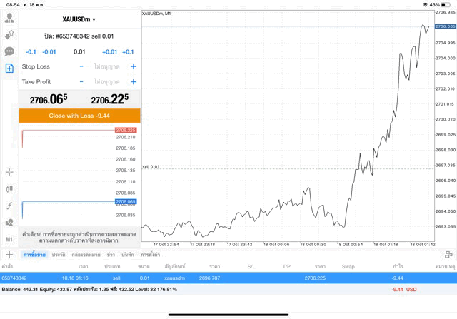 การเทรด XAUUSDm (ทองคำ) 0.01 lot แอพ Mt4
