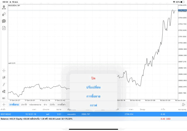 ติดลบก่อนนะ เมื่อเวลาผ่านไป ผลการลงทุนอาจจะกลับไปได้กำไร หรือ อาจติดลบเพิ่มขึ้น อาจได้กำไร มาก น้อย หรือ ขาดทุน มาก น้อย XAUUSDm หมายถึง ทองคำ (XAU) แลกเปลี่ยน เงินดอลลาร์อเมริกา (USD)