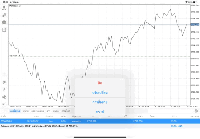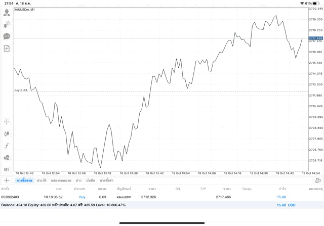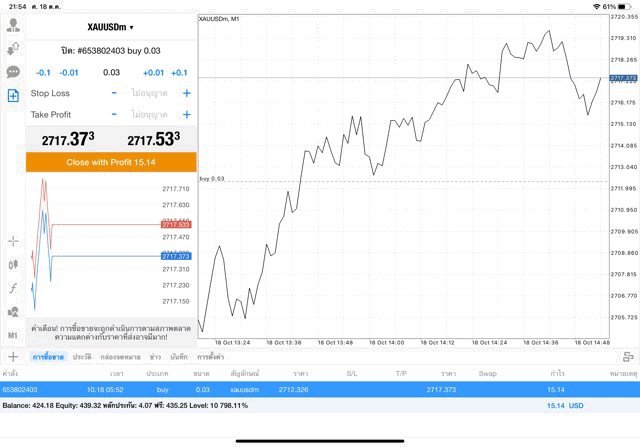 การเทรด XAUUSDm (ทองคำ) 0.03 lot แอพ Mt4