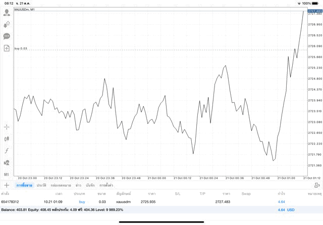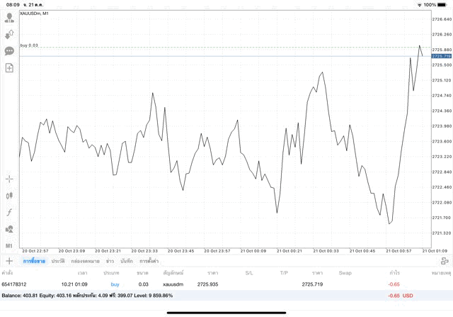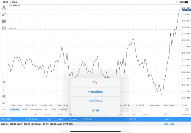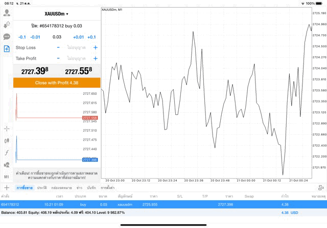 การเทรด XAUUSDm (ทองคำ) 0.03 lot แอพ Mt4