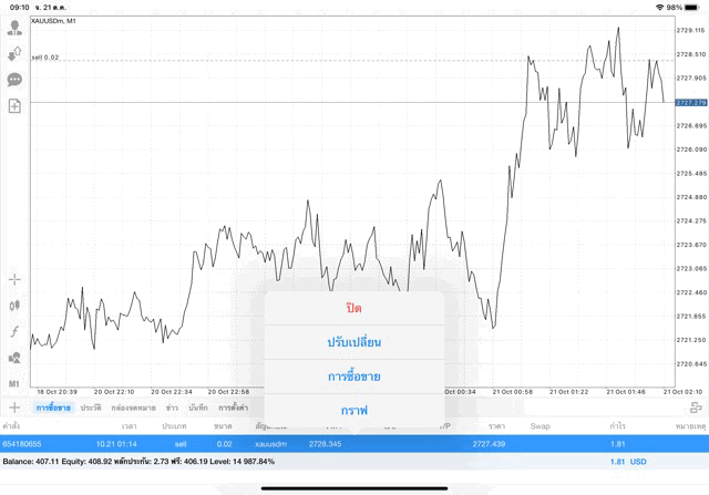 ติดลบก่อนนะ เมื่อเวลาผ่านไป ผลการลงทุนอาจจะกลับไปได้กำไร หรือ อาจติดลบเพิ่มขึ้น อาจได้กำไร มาก น้อย หรือ ขาดทุน มาก น้อย XAUUSDm หมายถึง ทองคำ (XAU) แลกเปลี่ยน เงินดอลลาร์อเมริกา (USD)