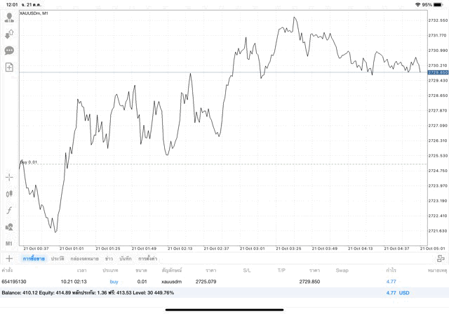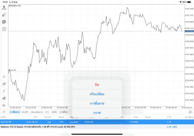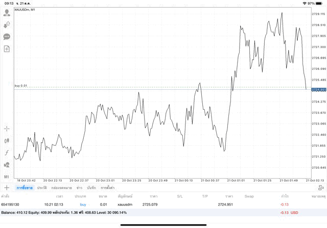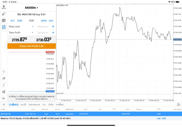 การเทรด XAUUSDm (ทองคำ) 0.01 lot แอพ Mt4