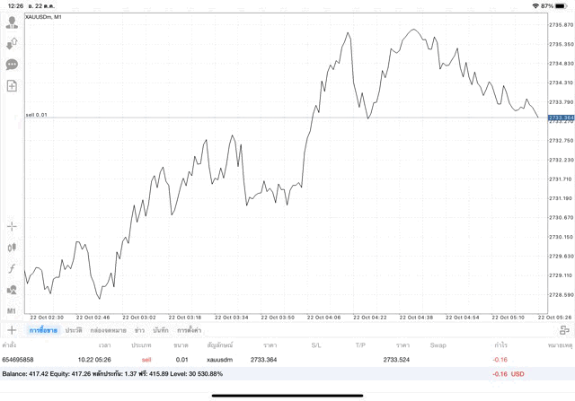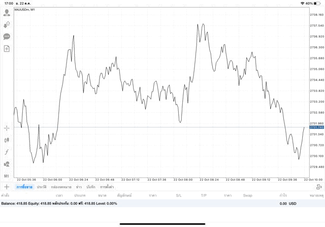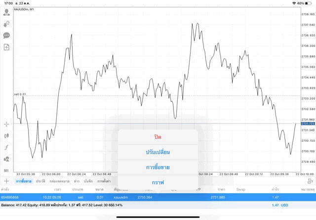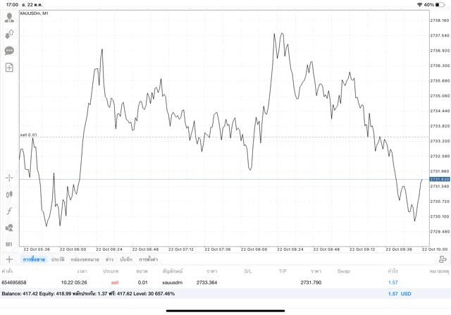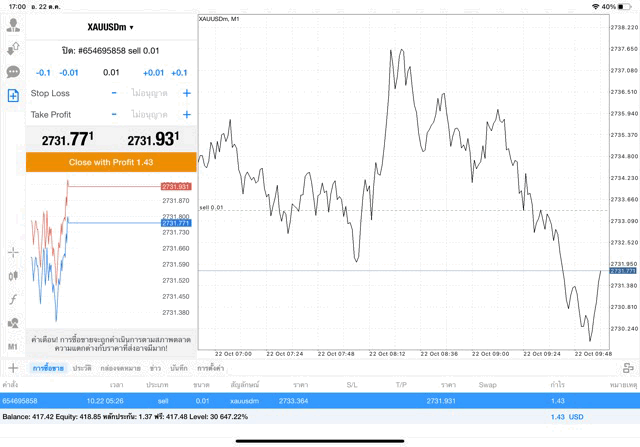 การเทรด XAUUSDm (ทองคำ) 0.01 lot แอพ Mt4