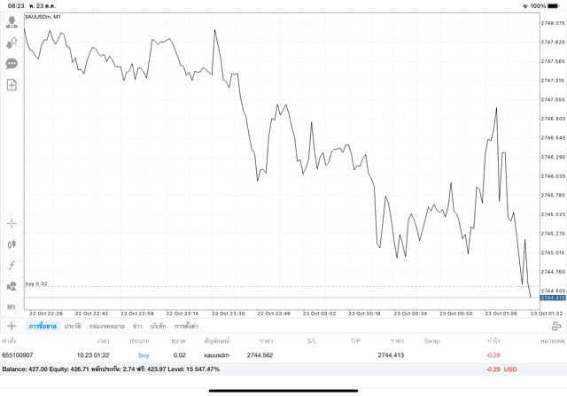 ติดลบก่อนนะ เมื่อเวลาผ่านไป ผลการลงทุนอาจจะกลับไปได้กำไร หรือ อาจติดลบเพิ่มขึ้น อาจได้กำไร มาก น้อย หรือ ขาดทุน มาก น้อย XAUUSDm หมายถึง ทองคำ (XAU) แลกเปลี่ยน เงินดอลลาร์อเมริกา (USD)