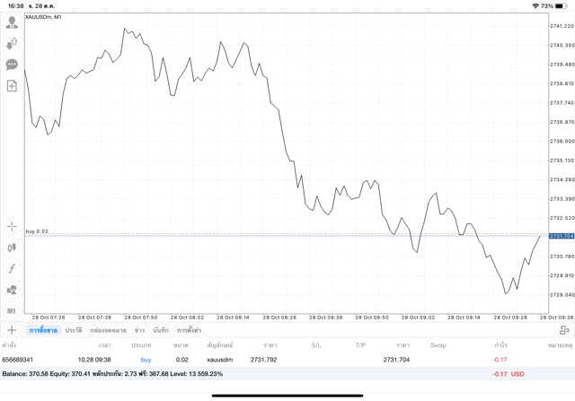 การเทรด XAUUSDm (ทองคำ) 0.02 lot แอพ Mt4