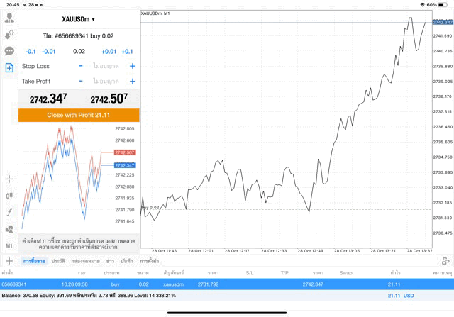ติดลบก่อนนะ เมื่อเวลาผ่านไป ผลการลงทุนอาจจะกลับไปได้กำไร หรือ อาจติดลบเพิ่มขึ้น อาจได้กำไร มาก น้อย หรือ ขาดทุน มาก น้อย XAUUSDm หมายถึง ทองคำ (XAU) แลกเปลี่ยน เงินดอลลาร์อเมริกา (USD)