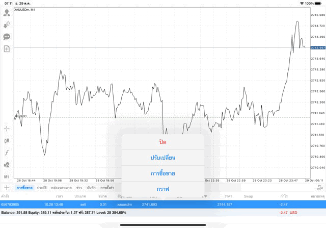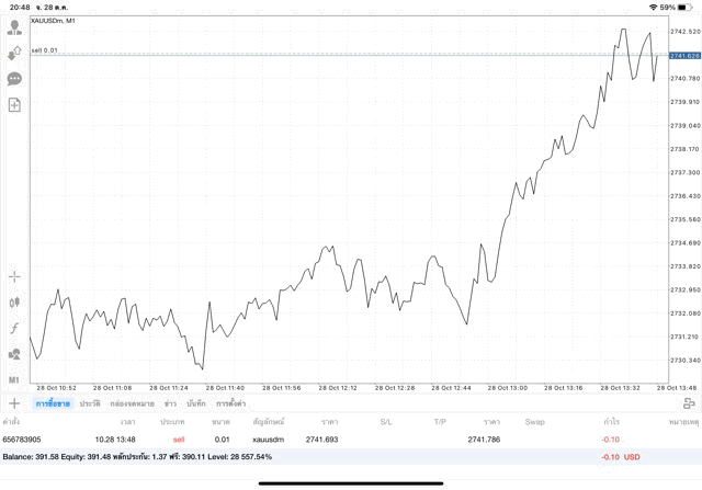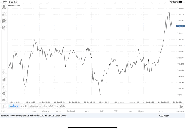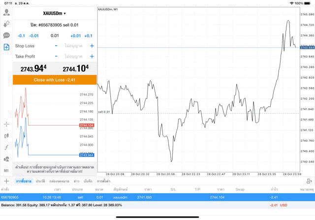 การเทรด XAUUSDm (ทองคำ) 0.01 lot แอพ Mt4