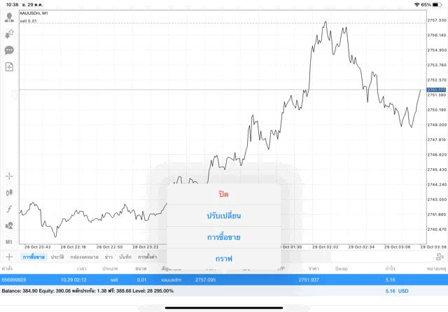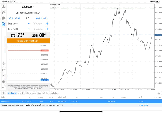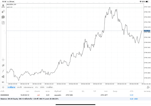 การเทรด XAUUSDm (ทองคำ) 0.01 lot แอพ Mt4