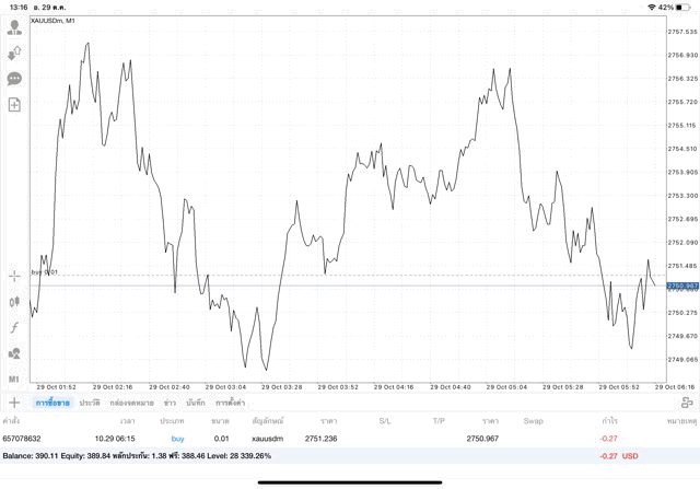 ติดลบก่อนนะ เมื่อเวลาผ่านไป ผลการลงทุนอาจจะกลับไปได้กำไร หรือ อาจติดลบเพิ่มขึ้น อาจได้กำไร มาก น้อย หรือ ขาดทุน มาก น้อย XAUUSDm หมายถึง ทองคำ (XAU) แลกเปลี่ยน เงินดอลลาร์อเมริกา (USD)