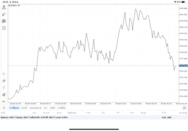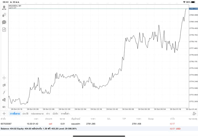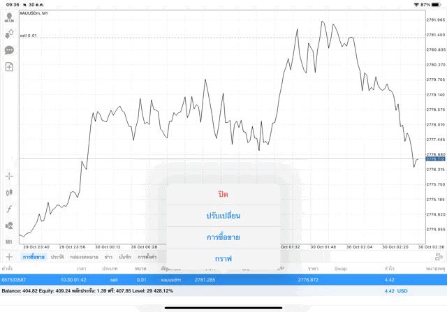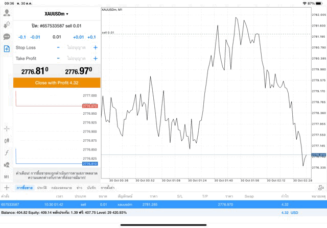 การเทรด XAUUSDm (ทองคำ) 0.01 lot แอพ Mt4