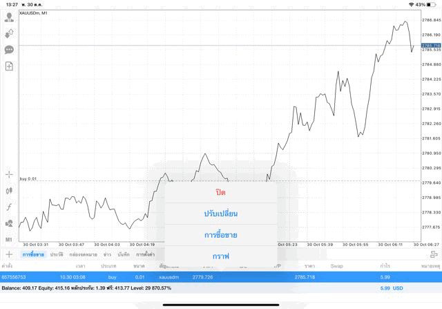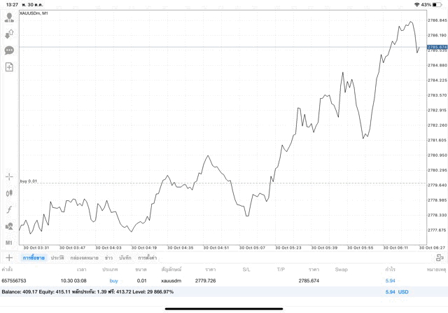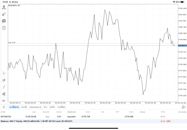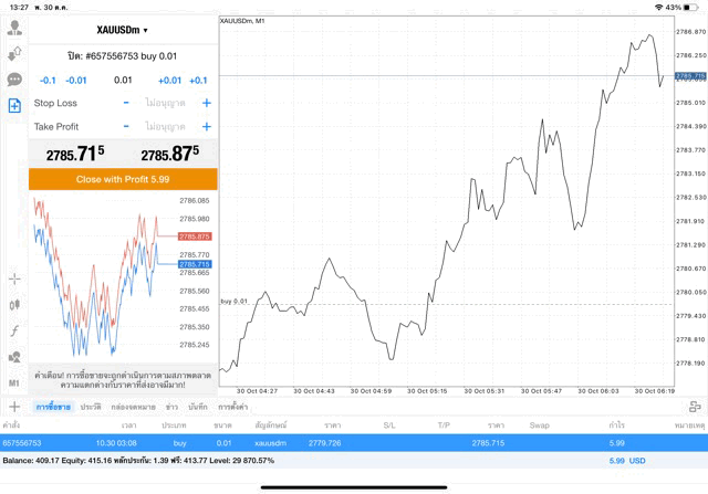การเทรด XAUUSDm (ทองคำ) 0.01 lot แอพ Mt4
