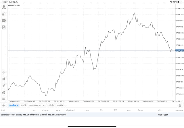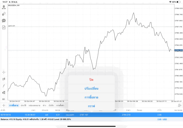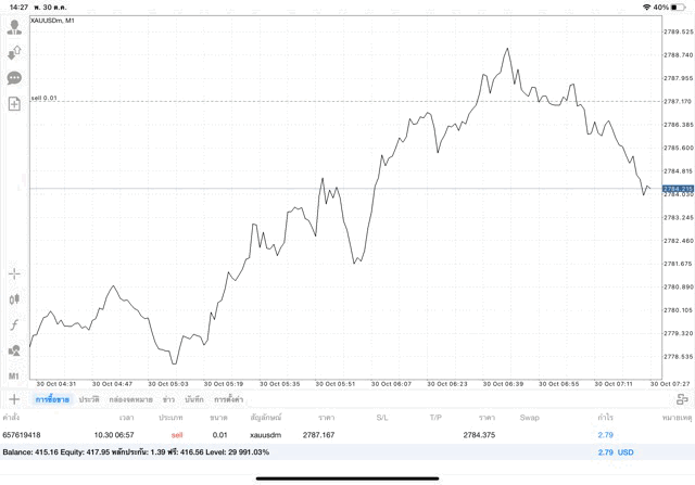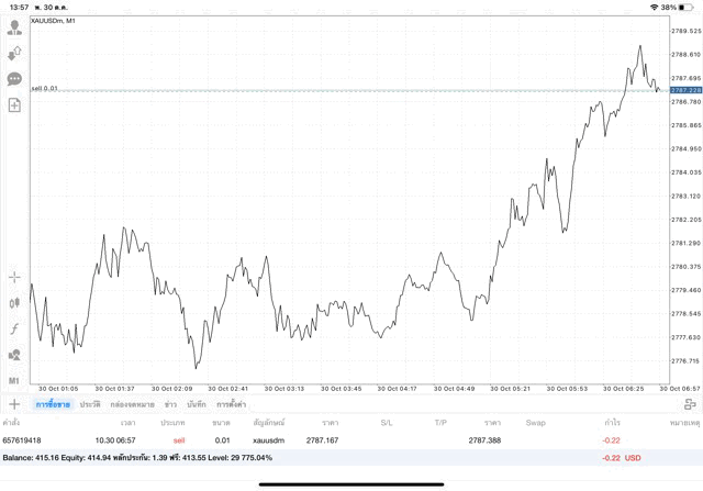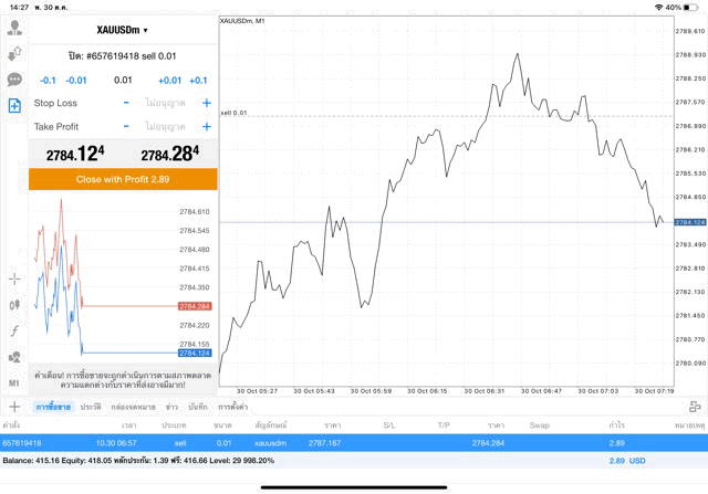 การเทรด XAUUSDm (ทองคำ) 0.01 lot แอพ Mt4