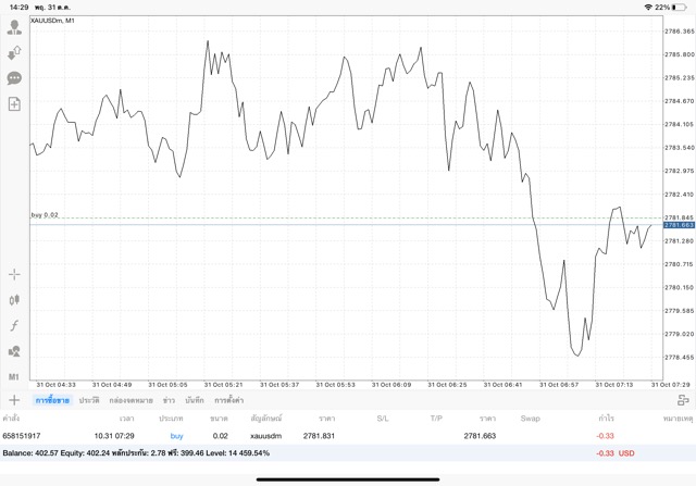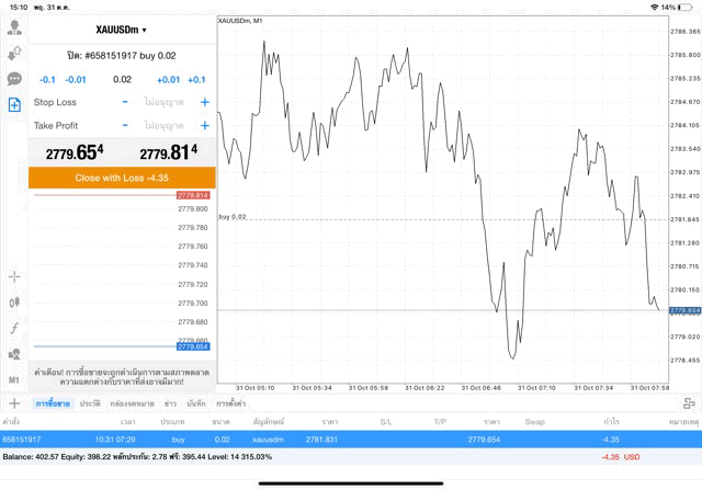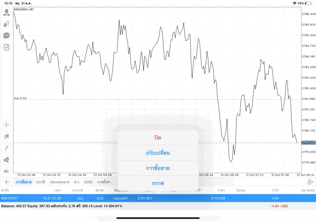 การเทรด XAUUSDm (ทองคำ) 0.02 lot แอพ Mt4