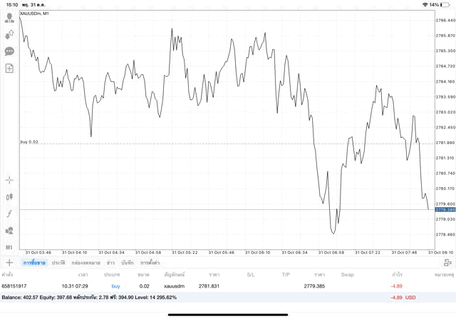 ติดลบก่อนนะ เมื่อเวลาผ่านไป ผลการลงทุนอาจจะกลับไปได้กำไร หรือ อาจติดลบเพิ่มขึ้น อาจได้กำไร มาก น้อย หรือ ขาดทุน มาก น้อย XAUUSDm หมายถึง ทองคำ (XAU) แลกเปลี่ยน เงินดอลลาร์อเมริกา (USD)