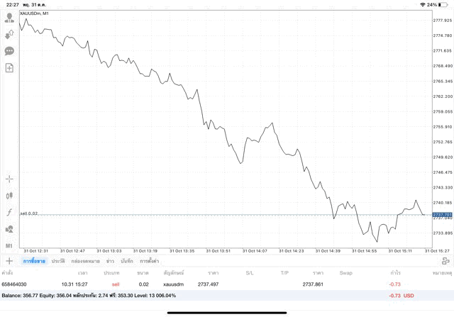 ติดลบก่อนนะ เมื่อเวลาผ่านไป ผลการลงทุนอาจจะกลับไปได้กำไร หรือ อาจติดลบเพิ่มขึ้น อาจได้กำไร มาก น้อย หรือ ขาดทุน มาก น้อย XAUUSDm หมายถึง ทองคำ (XAU) แลกเปลี่ยน เงินดอลลาร์อเมริกา (USD)