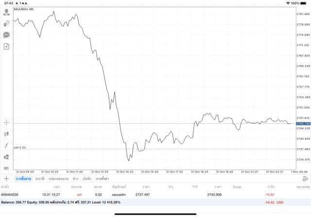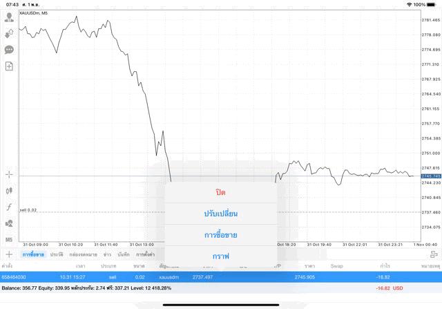 เวลาผ่านไป ผลการลงทุน -16.82$ ถ้าเปิดการเทรดครั้งนี้ไว้ต่อ ผลการลงทุนยังเปลี่ยนแปลงได้ อาจบวก อาจลบ บวกเพิ่ม ลบเพิ่ม