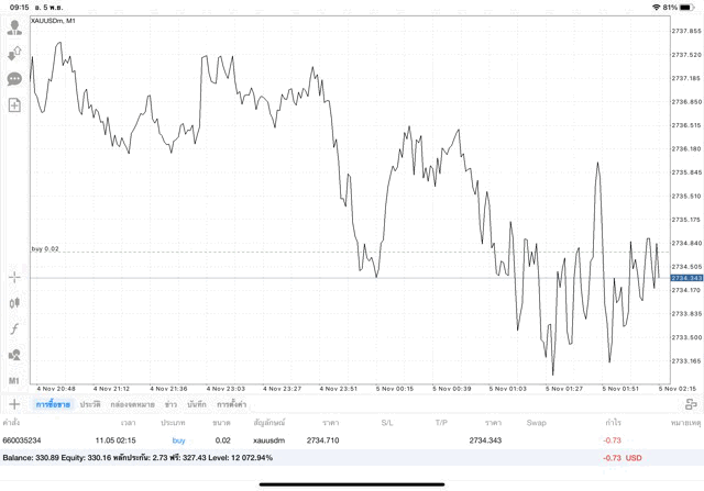 การเทรด XAUUSDm (ทองคำ) 0.02 lot แอพ Mt4