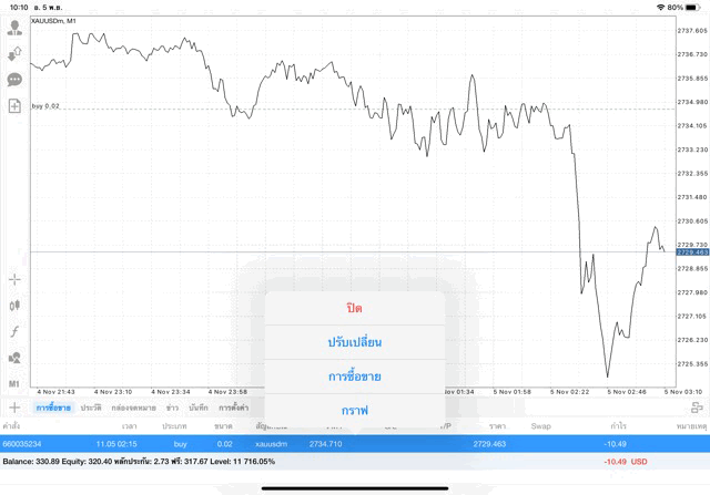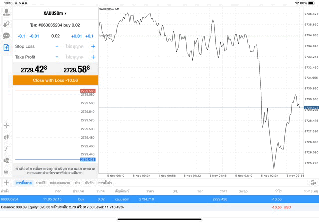 ติดลบก่อนนะ เมื่อเวลาผ่านไป ผลการลงทุนอาจจะกลับไปบวก หรือ อาจติดลบเพิ่มขึ้น อาจได้กำไร มาก น้อย หรือ ขาดทุน มาก น้อย XAUUSDm หมายถึง ทองคำ (XAU) แลกเปลี่ยน เงินดอลลาร์อเมริกา (USD)