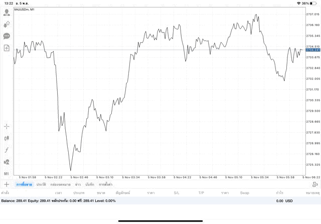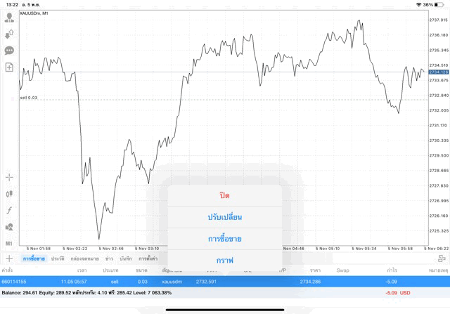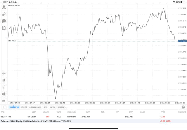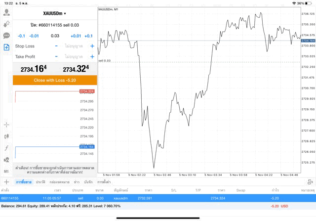 การเทรด XAUUSDm (ทองคำ) 0.03 lot แอพ Mt4