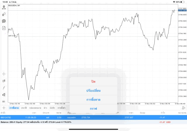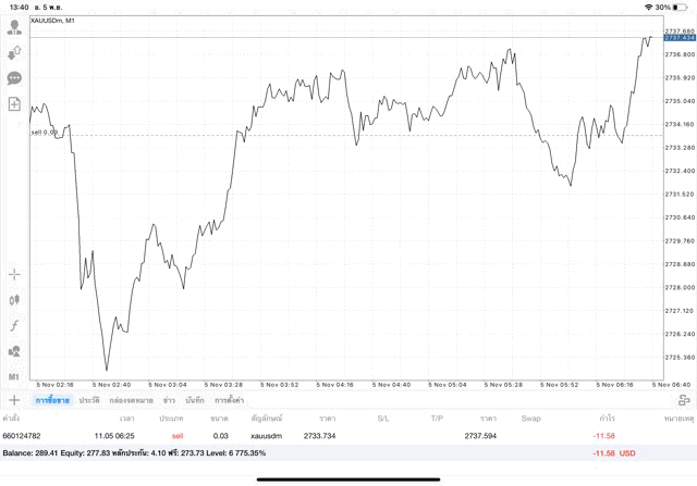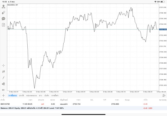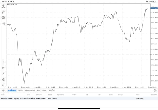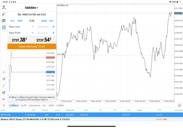 การเทรด XAUUSDm (ทองคำ) 0.03 lot แอพ Mt4