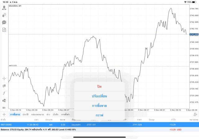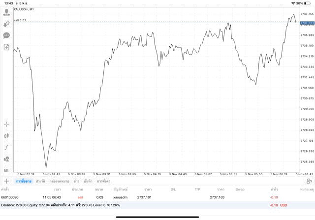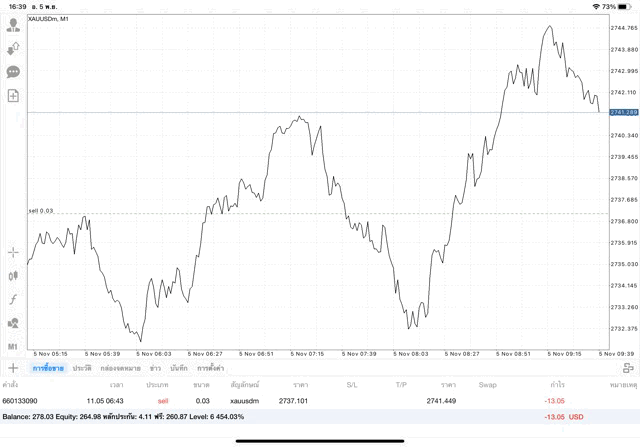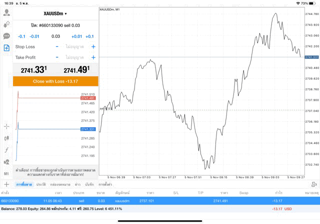 การเทรด XAUUSDm (ทองคำ) 0.03 lot แอพ Mt4