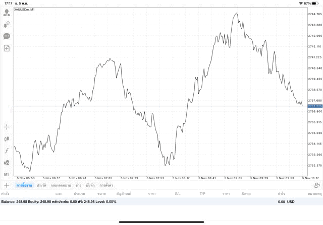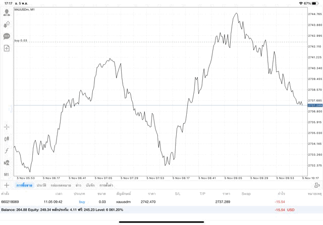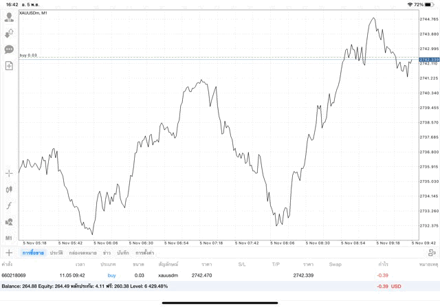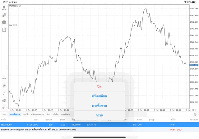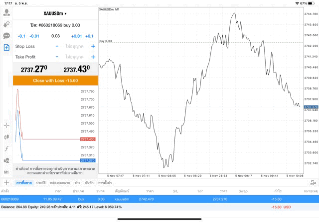 การเทรด XAUUSDm (ทองคำ) 0.03 lot แอพ Mt4