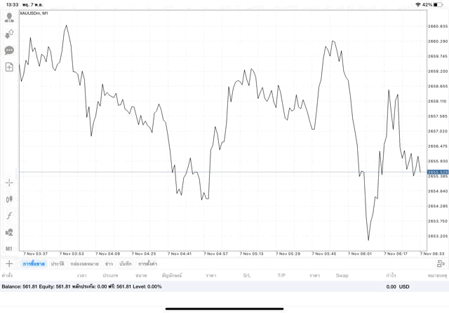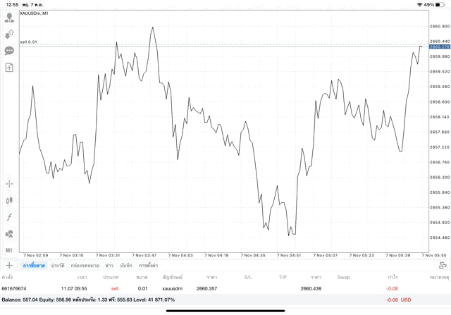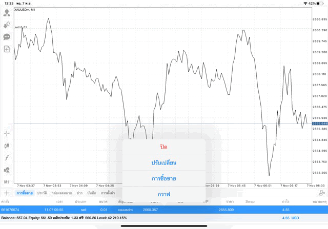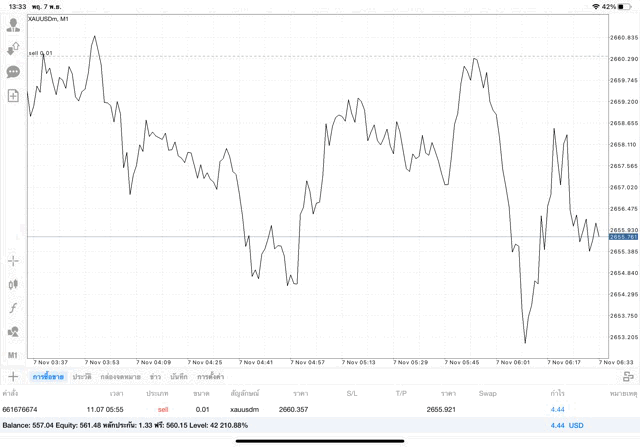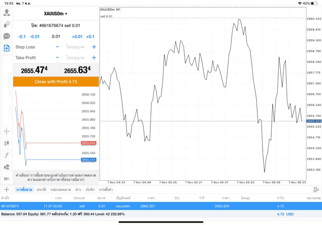 การเทรด XAUUSDm (ทองคำ) 0.01 lot แอพ Mt4
