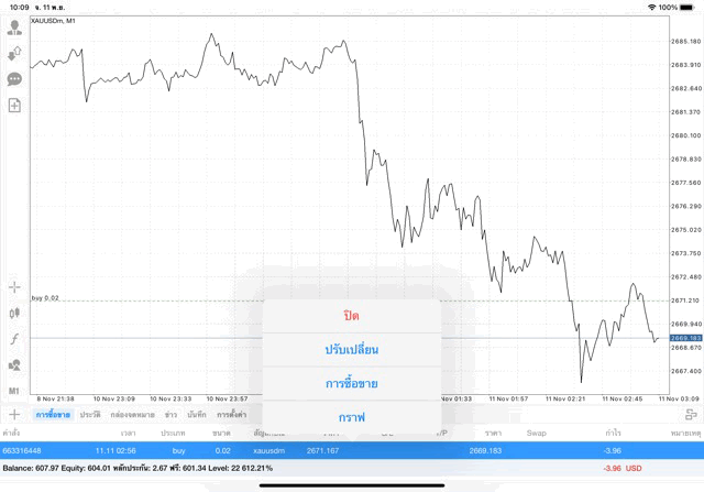 ติดลบก่อนนะ เมื่อเวลาผ่านไป ผลการลงทุนอาจจะกลับไปบวก หรือ อาจติดลบเพิ่มขึ้น อาจได้กำไร มาก น้อย หรือ ขาดทุน มาก น้อย XAUUSDm หมายถึง ทองคำ (XAU) แลกเปลี่ยน เงินดอลลาร์อเมริกา (USD)