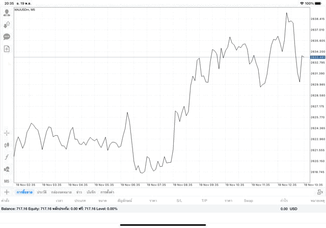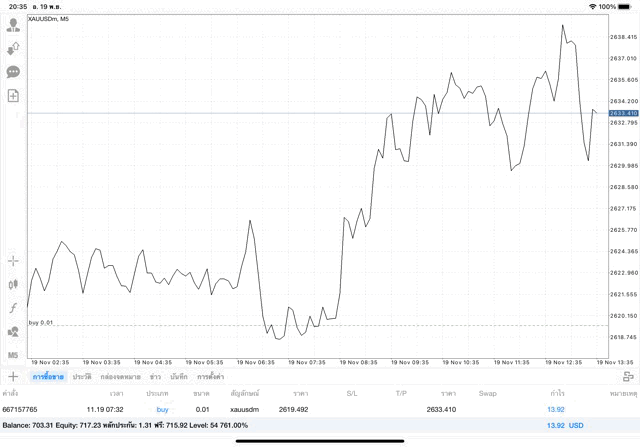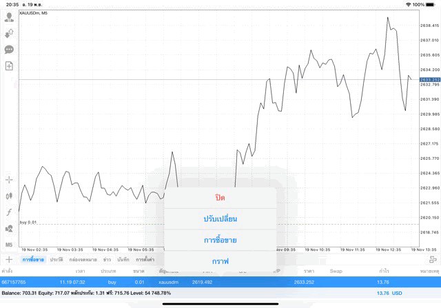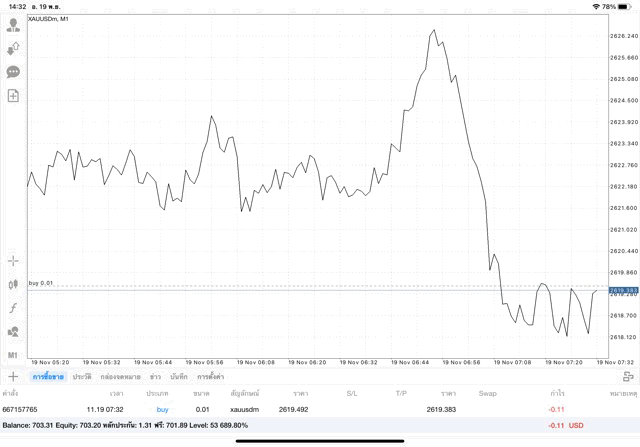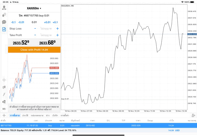 การเทรด XAUUSDm (ทองคำ) 0.01 lot แอพ Mt4