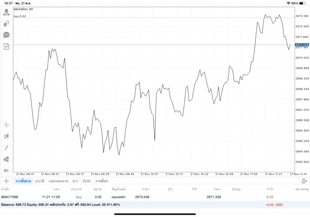 ติดลบก่อนนะ เมื่อเวลาผ่านไป ผลการลงทุนอาจจะกลับไปบวก หรือ อาจติดลบเพิ่มขึ้น อาจได้กำไร มาก น้อย หรือ ขาดทุน มาก น้อย XAUUSDm หมายถึง ทองคำ (XAU) แลกเปลี่ยน เงินดอลลาร์อเมริกา (USD)