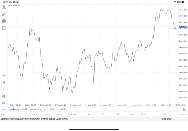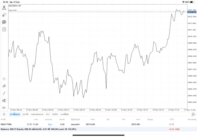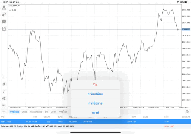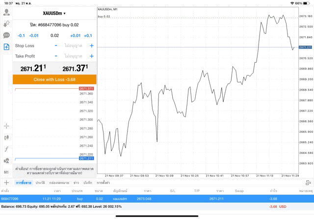 การเทรด XAUUSDm (ทองคำ) 0.02 lot แอพ Mt4