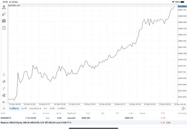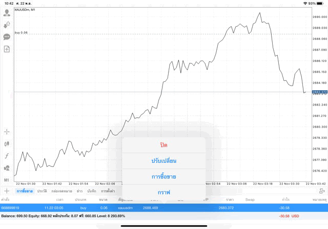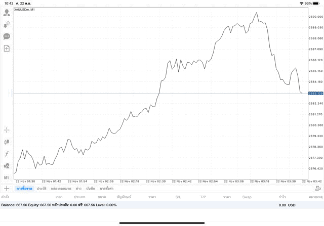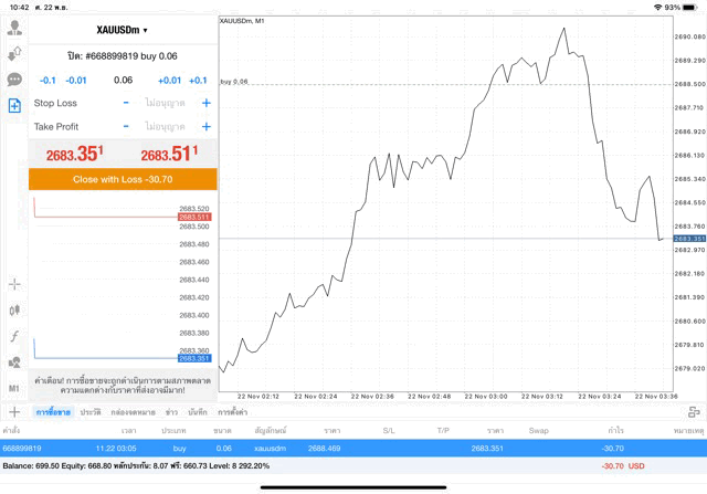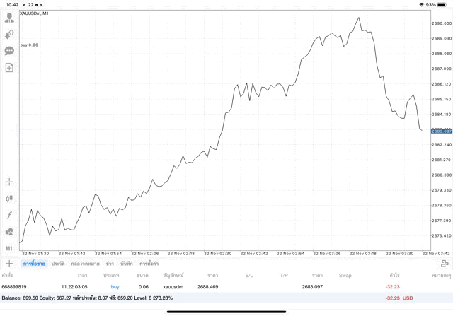 การเทรด XAUUSDm (ทองคำ) 0.06 lot แอพ Mt4