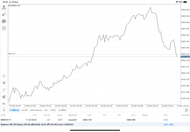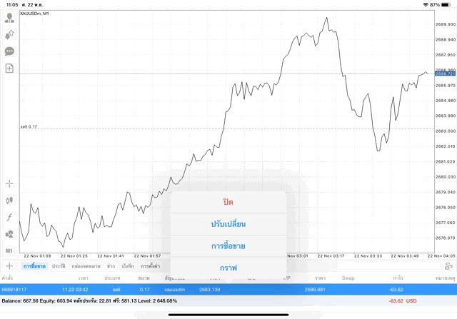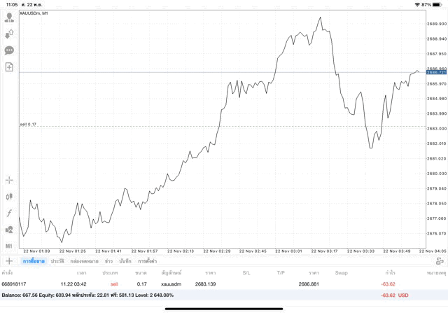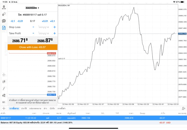 การเทรด XAUUSDm (ทองคำ) 0.17 lot แอพ Mt4