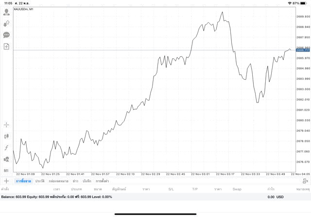 ออเดอร์นี้ได้บวกทันที เพราะราคาเปลี่ยนขณะส่งคำสั่งเทรด เมื่อเวลาผ่านไป ผลการลงทุนอาจจะกลับไปลบ หรือ อาจบวกเพิ่มขึ้น อาจได้กำไร มาก น้อย หรือ ขาดทุน มาก น้อย XAUUSDm หมายถึง ทองคำ (XAU) แลกเปลี่ยน เงินดอลลาร์อเมริกา (USD)