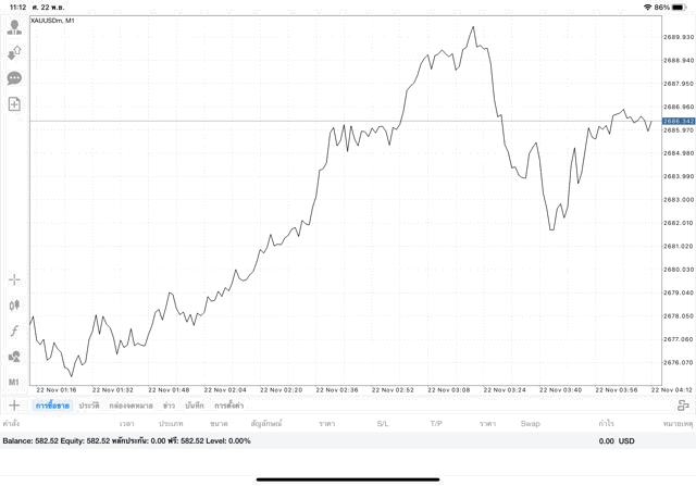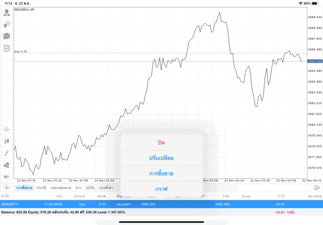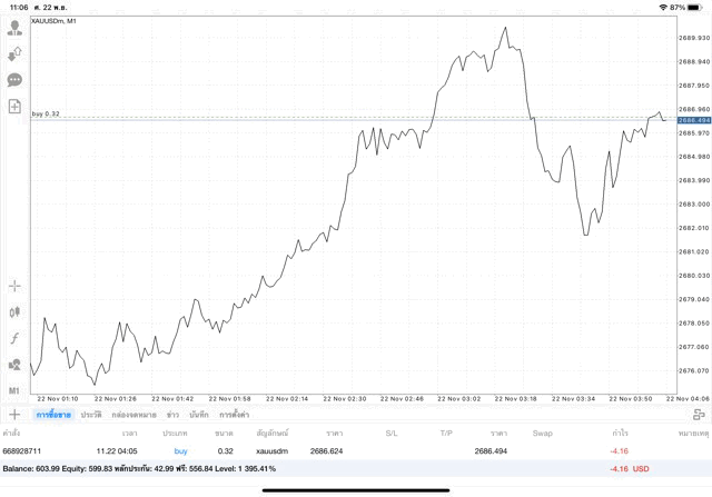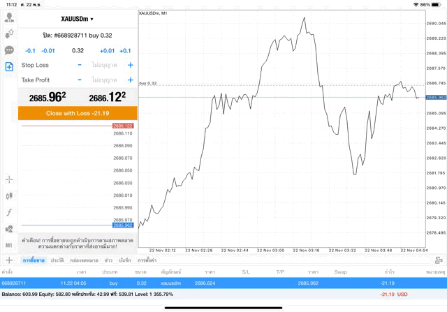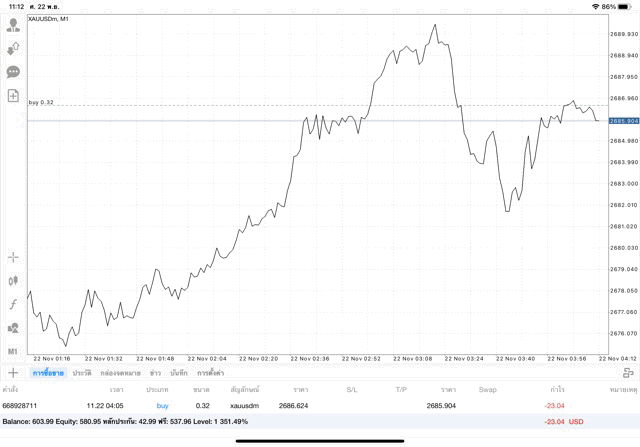 การเทรด XAUUSDm (ทองคำ) 0.32 lot แอพ Mt4