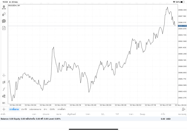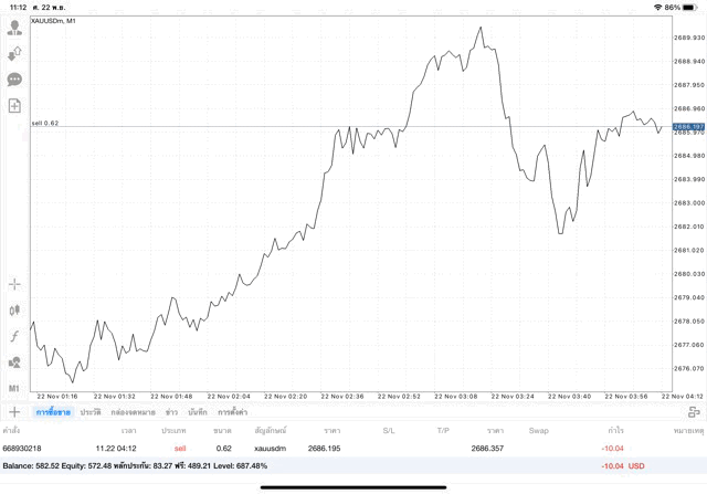 การเทรด XAUUSDm (ทองคำ) 0.62 lot แอพ Mt4