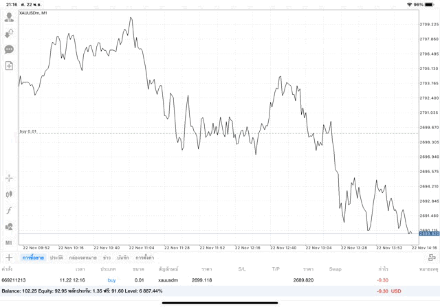 ติดลบก่อนนะ เมื่อเวลาผ่านไป ผลการลงทุนอาจจะกลับไปบวก หรือ อาจติดลบเพิ่มขึ้น อาจได้กำไร มาก น้อย หรือ ขาดทุน มาก น้อย XAUUSDm หมายถึง ทองคำ (XAU) แลกเปลี่ยน เงินดอลลาร์อเมริกา (USD)