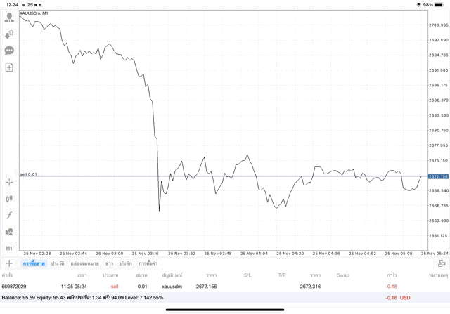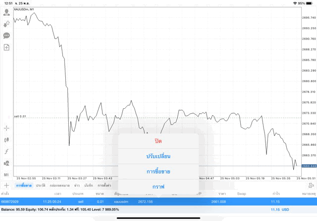 ติดลบก่อนนะ เมื่อเวลาผ่านไป ผลการลงทุนอาจจะกลับไปบวก หรือ อาจติดลบเพิ่มขึ้น อาจได้กำไร มาก น้อย หรือ ขาดทุน มาก น้อย XAUUSDm หมายถึง ทองคำ (XAU) แลกเปลี่ยน เงินดอลลาร์อเมริกา (USD)