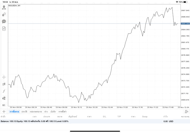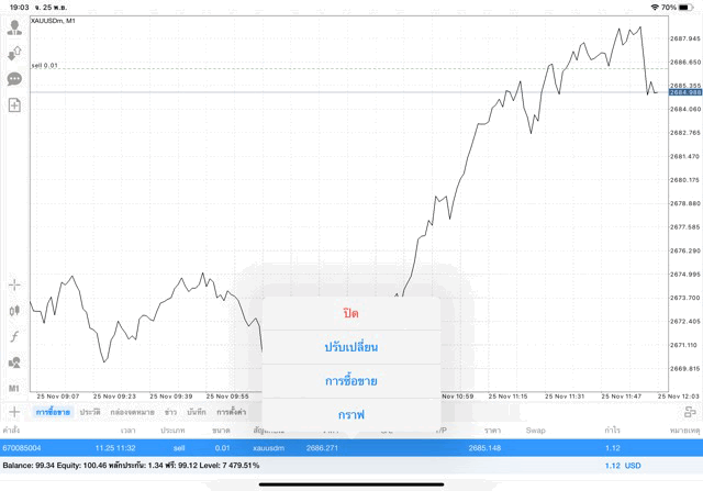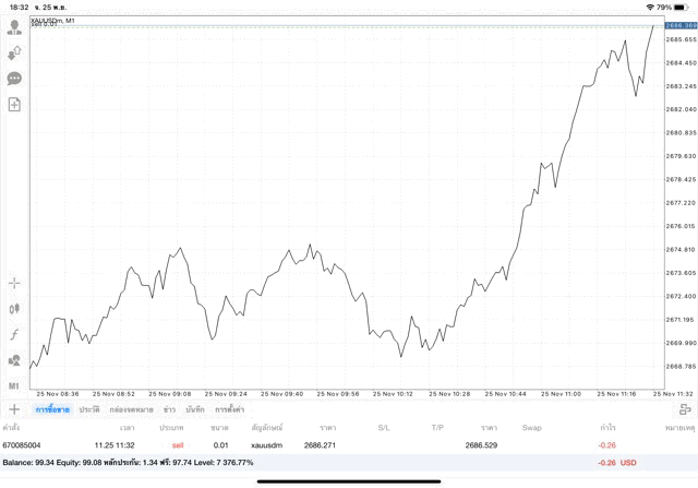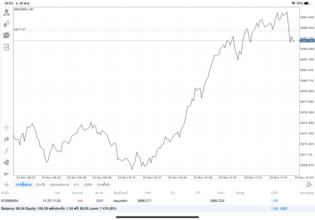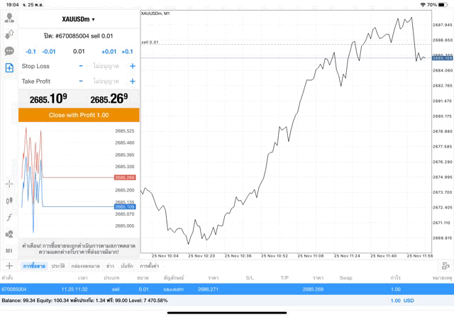 การเทรด XAUUSDm (ทองคำ) 0.01 lot แอพ Mt4