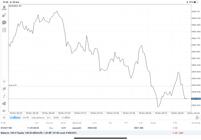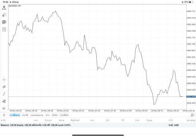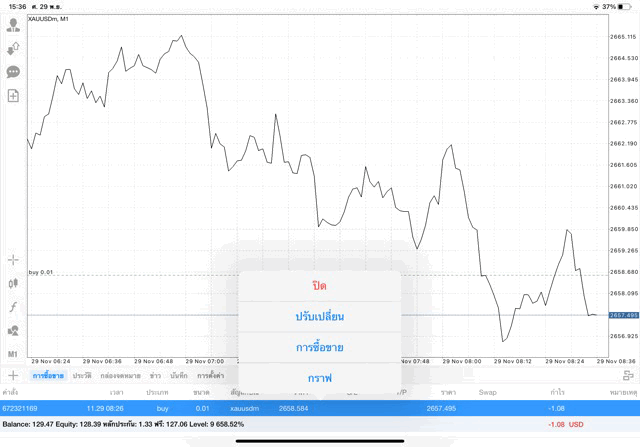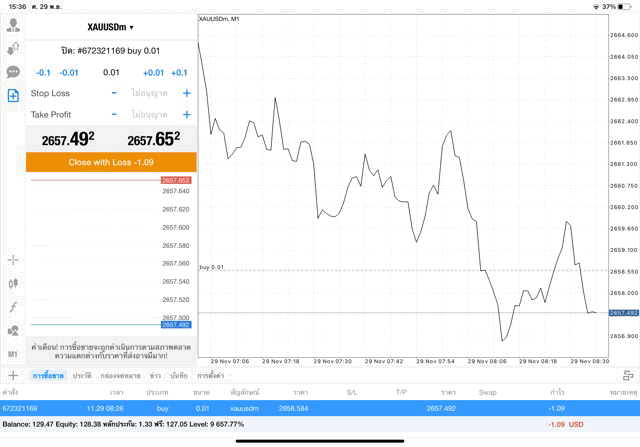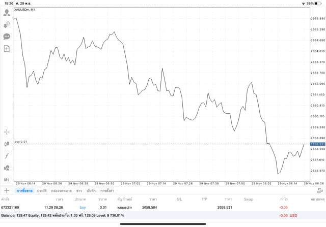 การเทรด XAUUSDm (ทองคำ) 0.01 lot แอพ Mt4