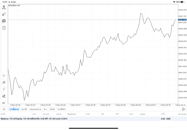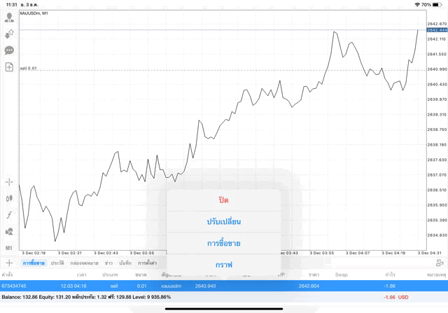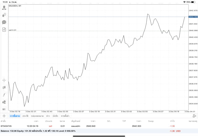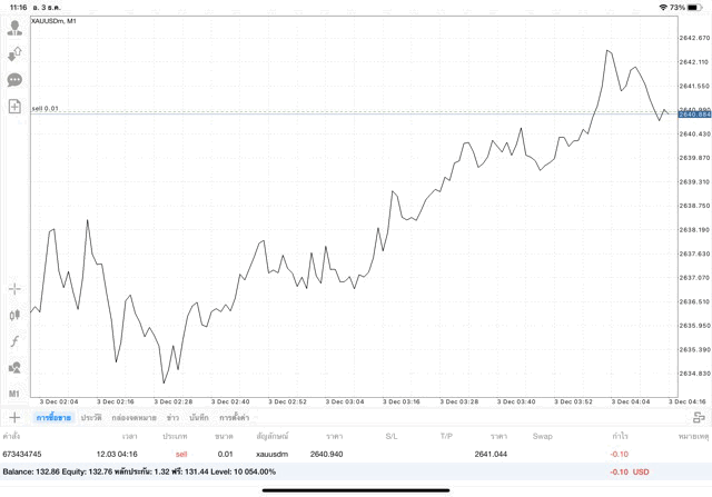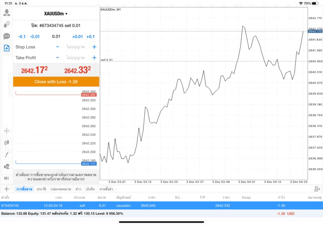 การเทรด XAUUSDm (ทองคำ) 0.01 lot แอพ Mt4