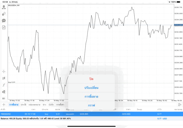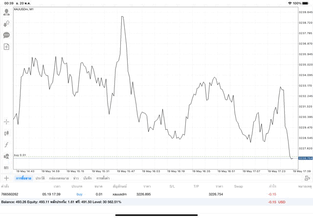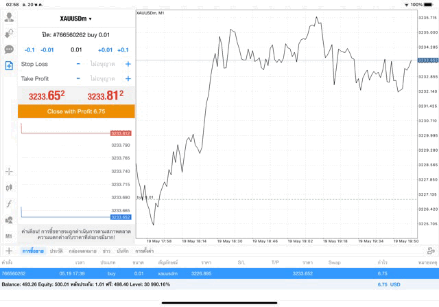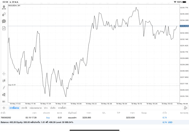การเทรด XAUUSDm (ทองคำ) 0.01 lot แอพ Mt4