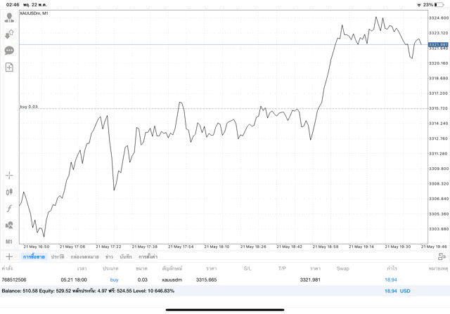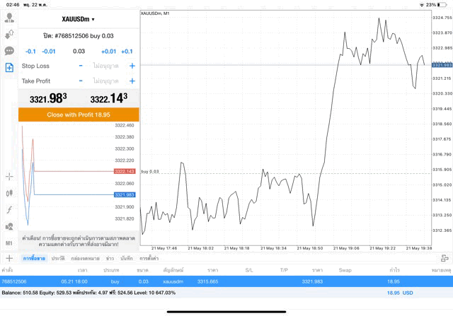 +18.94$ ถ้าเปิดการเทรดครั้งนี้ไว้ต่อ ผลการลงทุนยังเปลี่ยนแปลงได้ อาจบวก อาจลบ บวกเพิ่ม ลบเพิ่ม