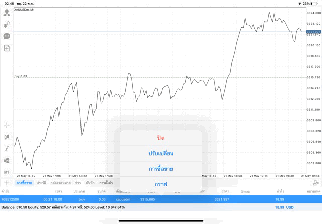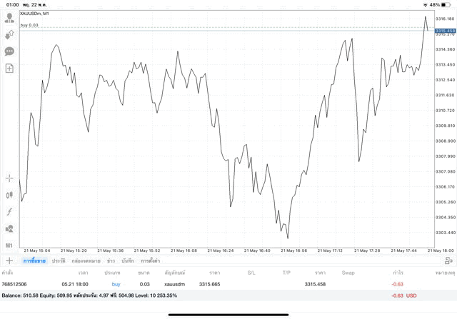 การเทรด XAUUSDm (ทองคำ) 0.03 lot แอพ Mt4