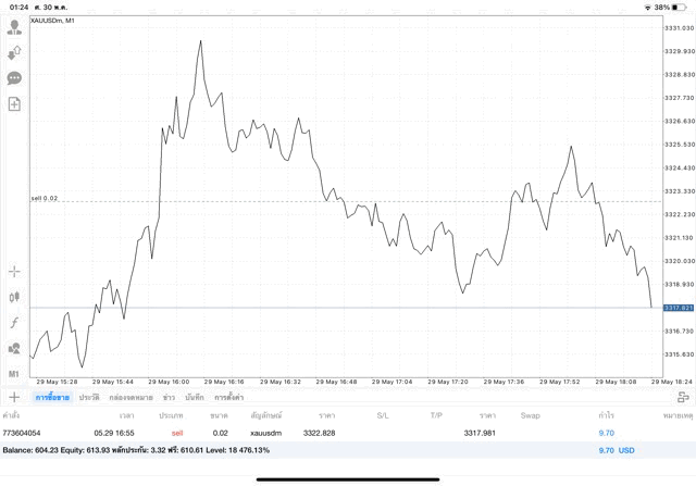 +9.70$ ถ้าเปิดการเทรดครั้งนี้ไว้ต่อ ผลการลงทุนยังเปลี่ยนแปลงได้ อาจบวก อาจลบ บวกเพิ่ม ลบเพิ่ม