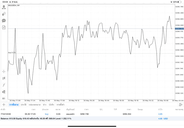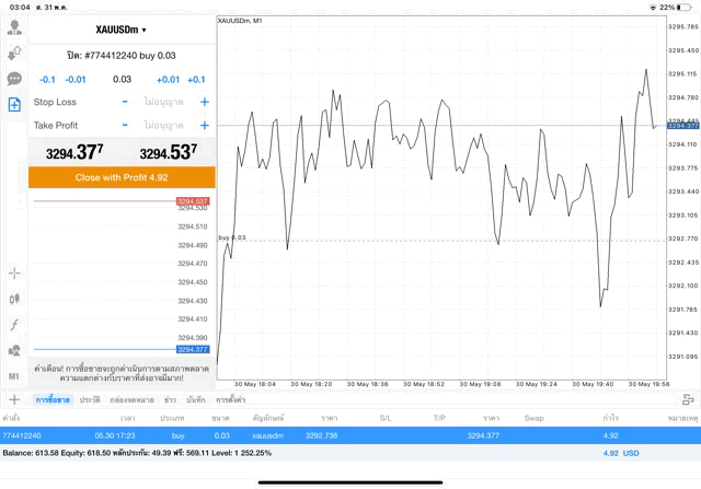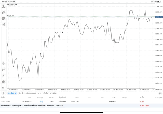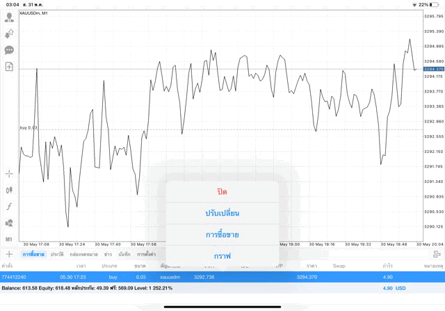 การเทรด XAUUSDm (ทองคำ) 0.03 lot แอพ Mt4