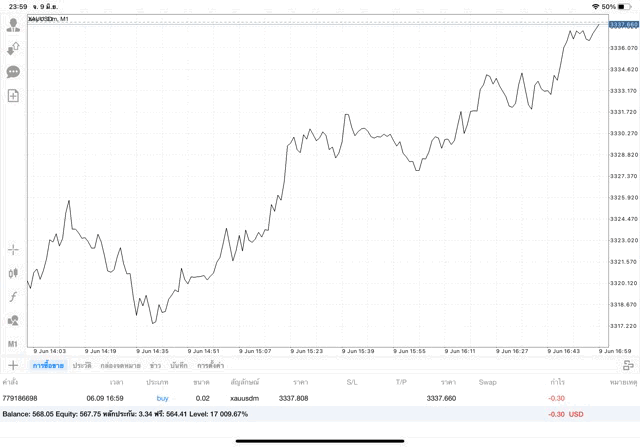 การเทรด XAUUSDm (ทองคำ) 0.02 lot แอพ Mt4